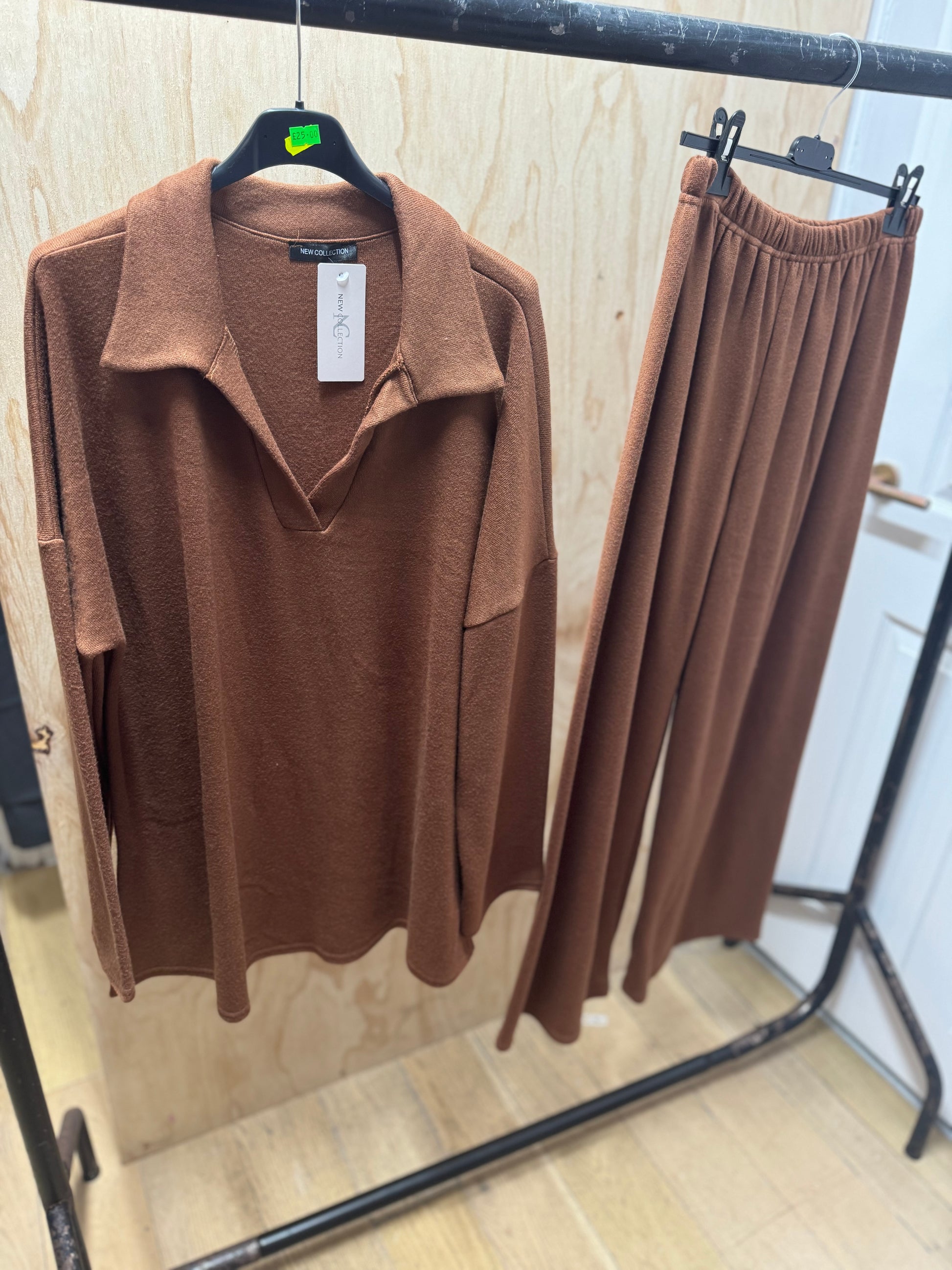 COLLARED SOFT WOOL AUTUMN CO ORD(brown)