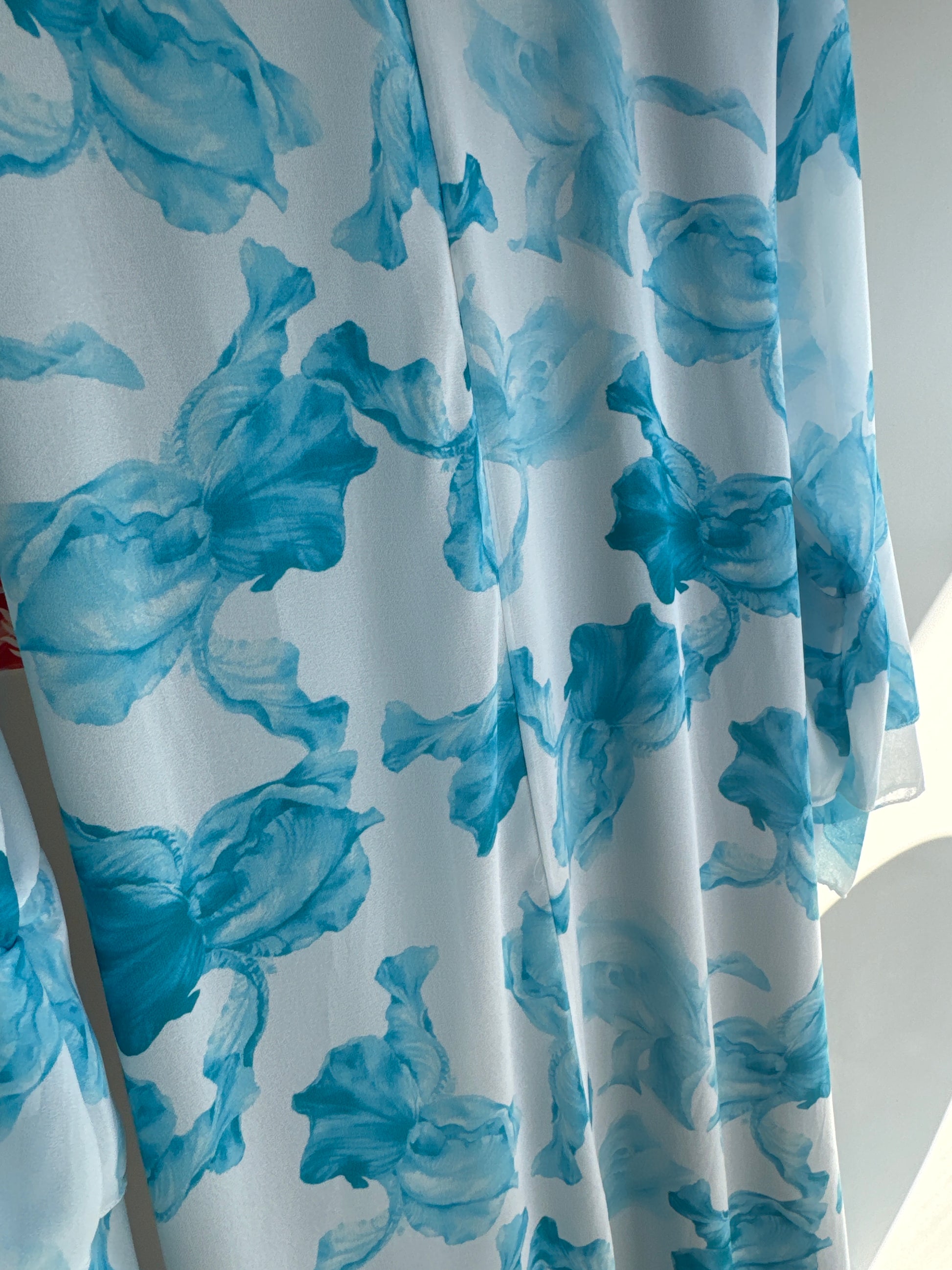 FLOWER PRINT CHIFFON DRESS WITH FLARED SLEEVES